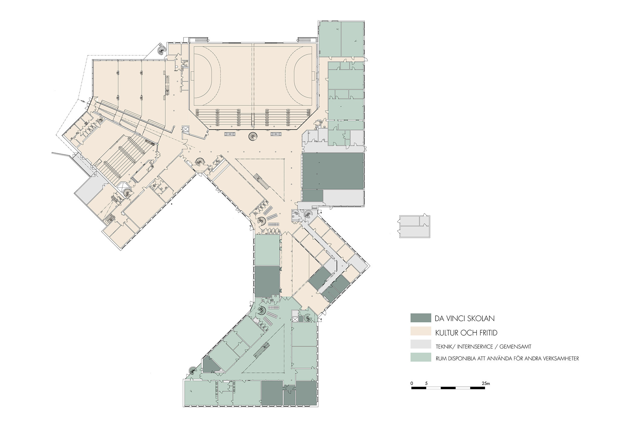 Kaka Arkitekter har genom hela projektet, från programstudie till bygghandling, arbetat med de komplexa samband och utmaningar som en multifunktionell kultur- och undervisningsbyggnad innebär i form av bland annat lokaleffektivitet, lokalanpassning, säkerhet samt flexibilitet och tagit fram en lösning där skola och kulturliv kan samverka och samutnyttja lokaler i en befintlig byggnad.