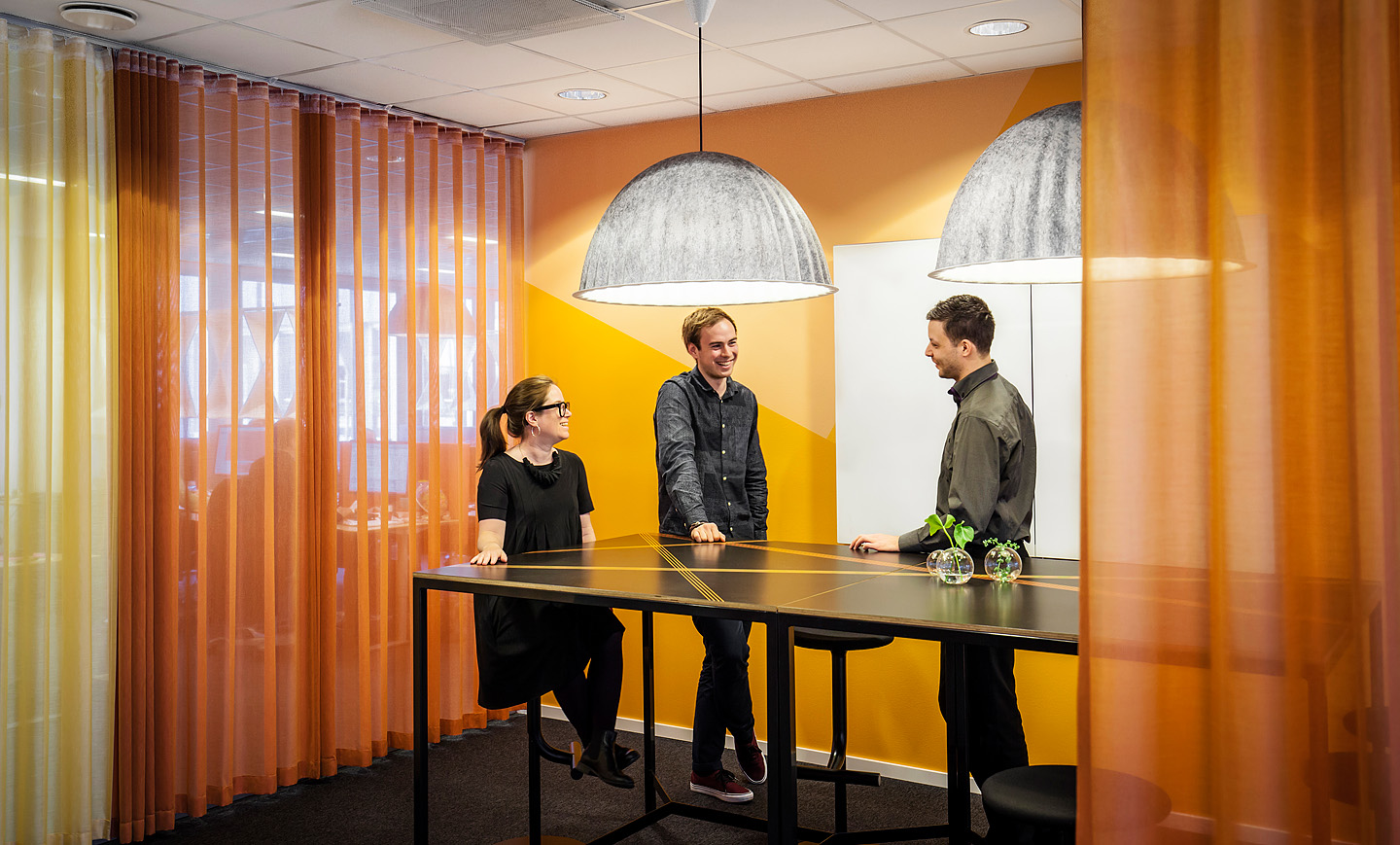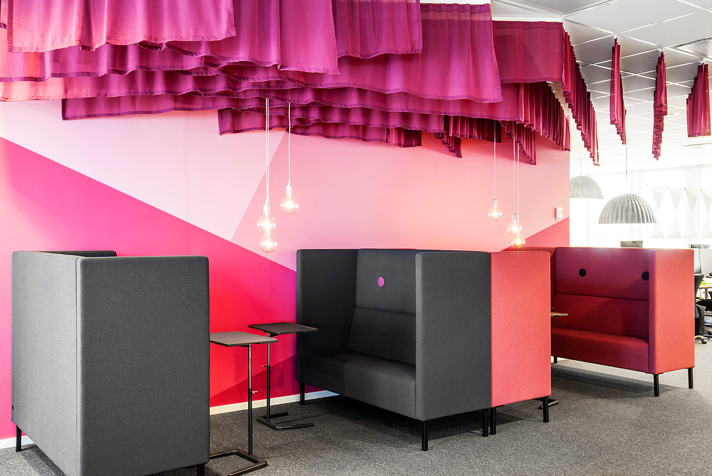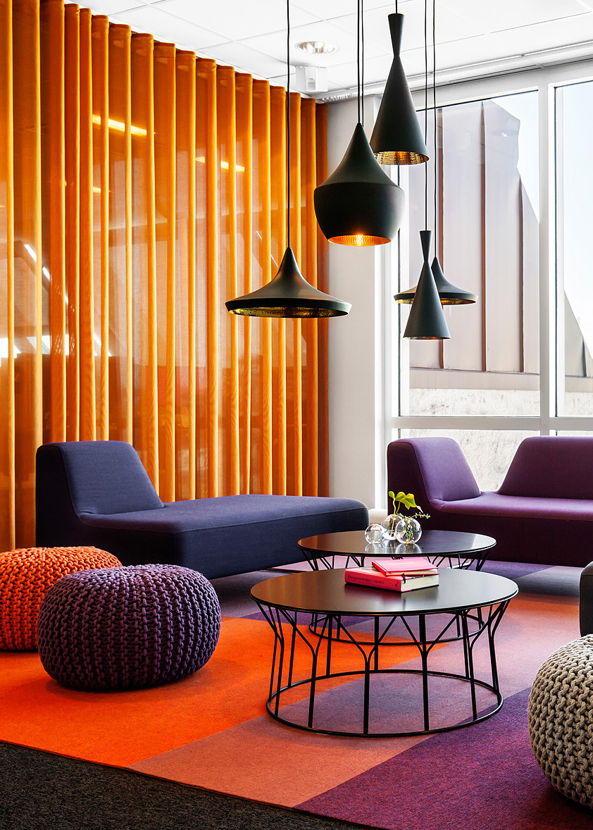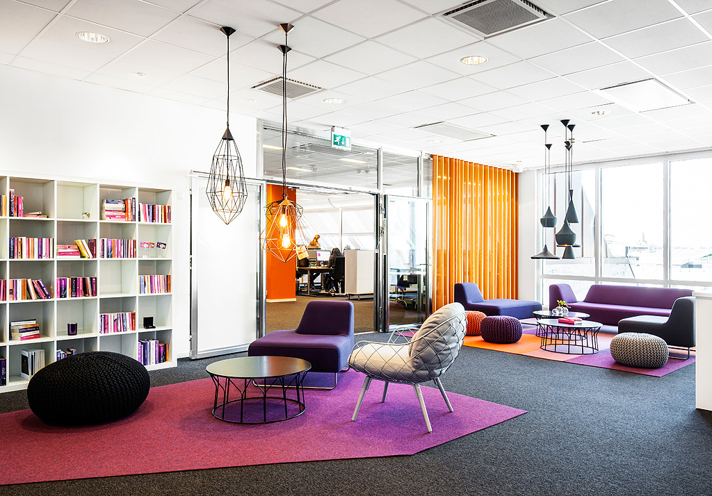 Kaka har skapat en inredning och färgsättning som förstärker företagets profil och ger en unik, kreativ och öppen arbetsplats. Bord för ståmöten och projektrum i det öppna kontorslandskapet ger de anställda en varierad arbetsmiljö som stödjer olika typer av arbetsuppgifter. Nya loungegrupper och ståbord vid mötesrummen bjuder in till fortsatt samtal efter möten och kaffestationer och mindre lounger skapar plats för spontana möten under dagen. Både lös och fast inredning är framtagen efter kundens behov och inspirationen är hämtad från företagets framåtanda och grafiska profil.