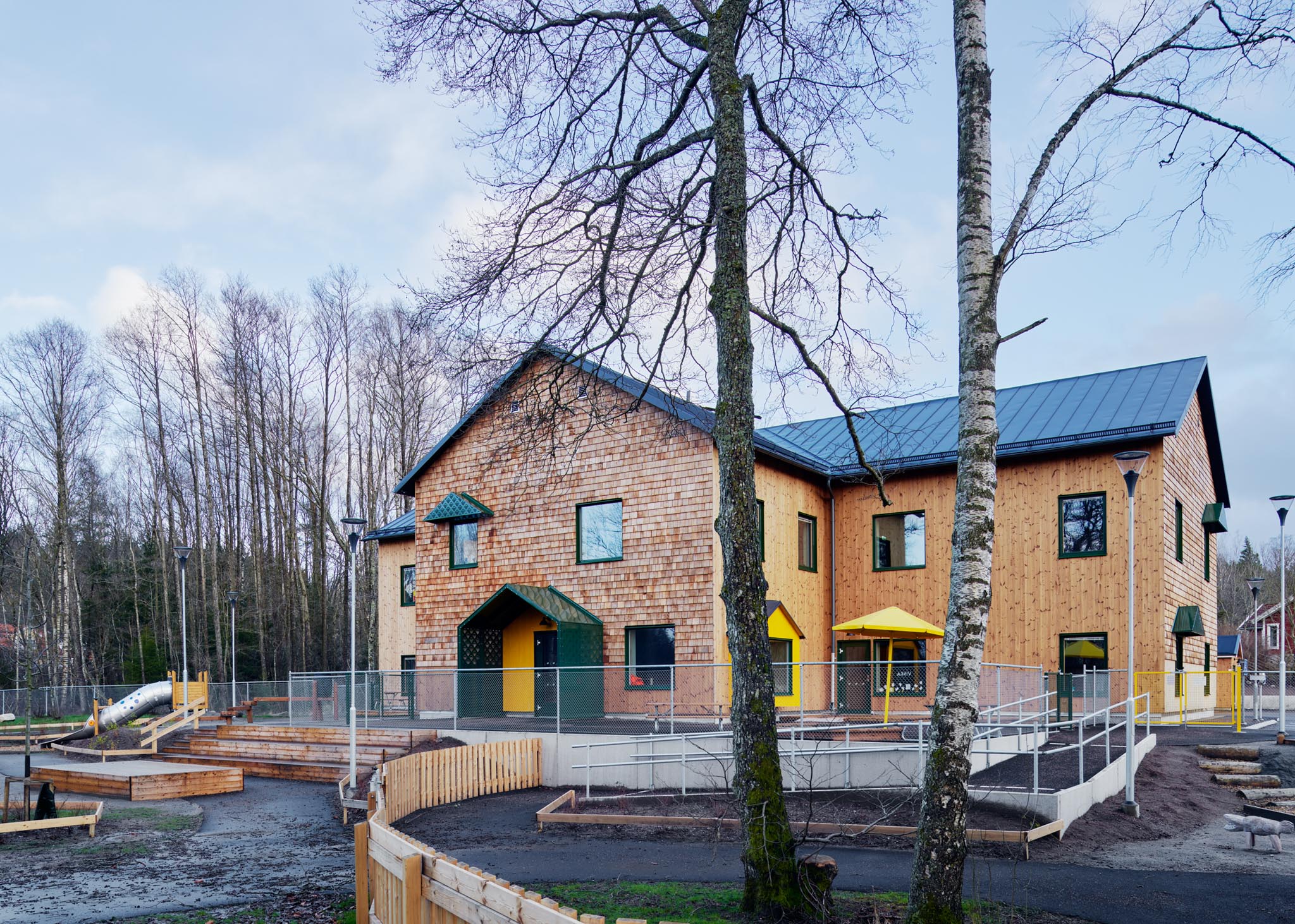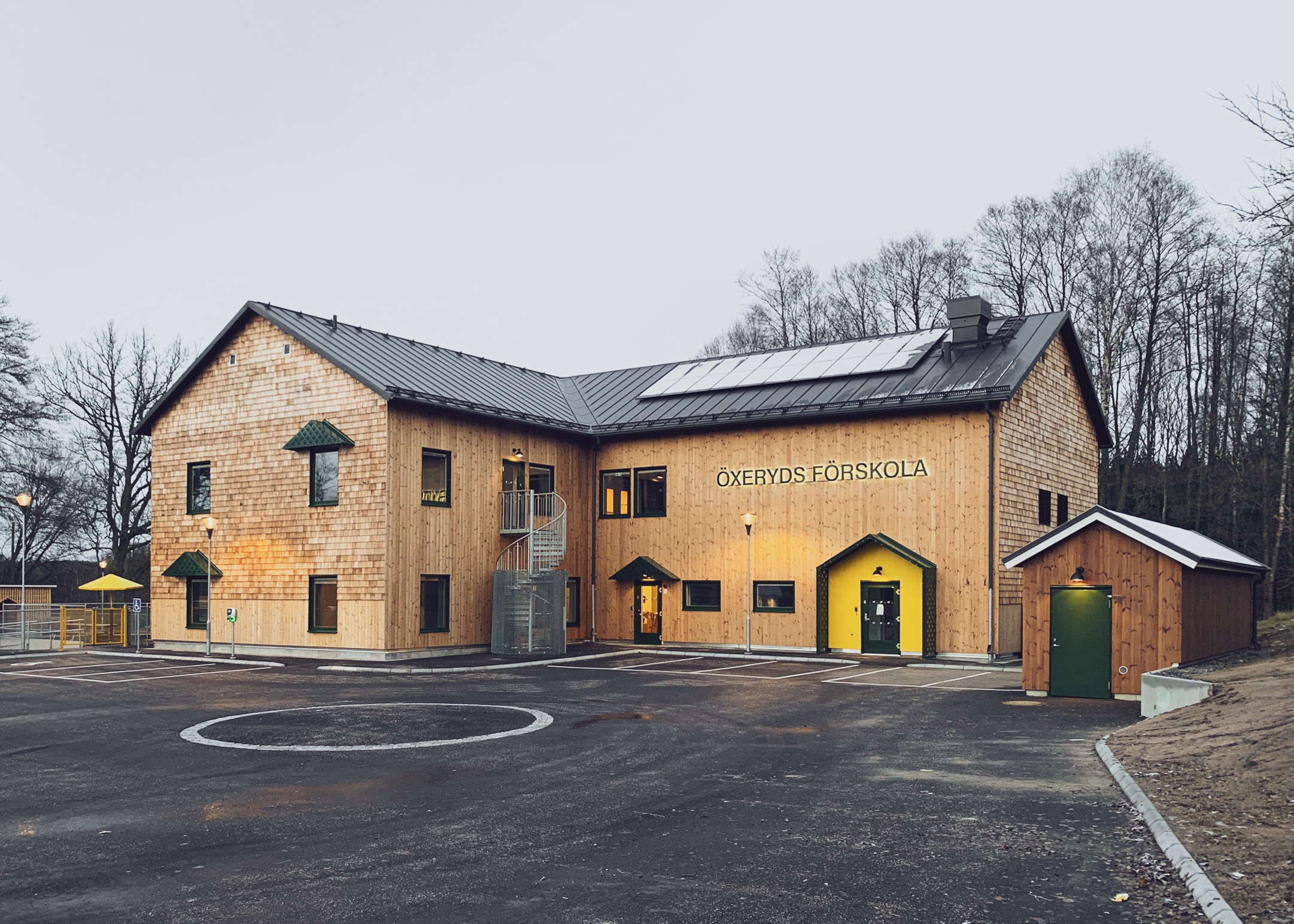 Öxeryd förskola är den första av fyra förskolor som Kaka ritat genom partnering med GBJ Bygg för Lerums kommun.