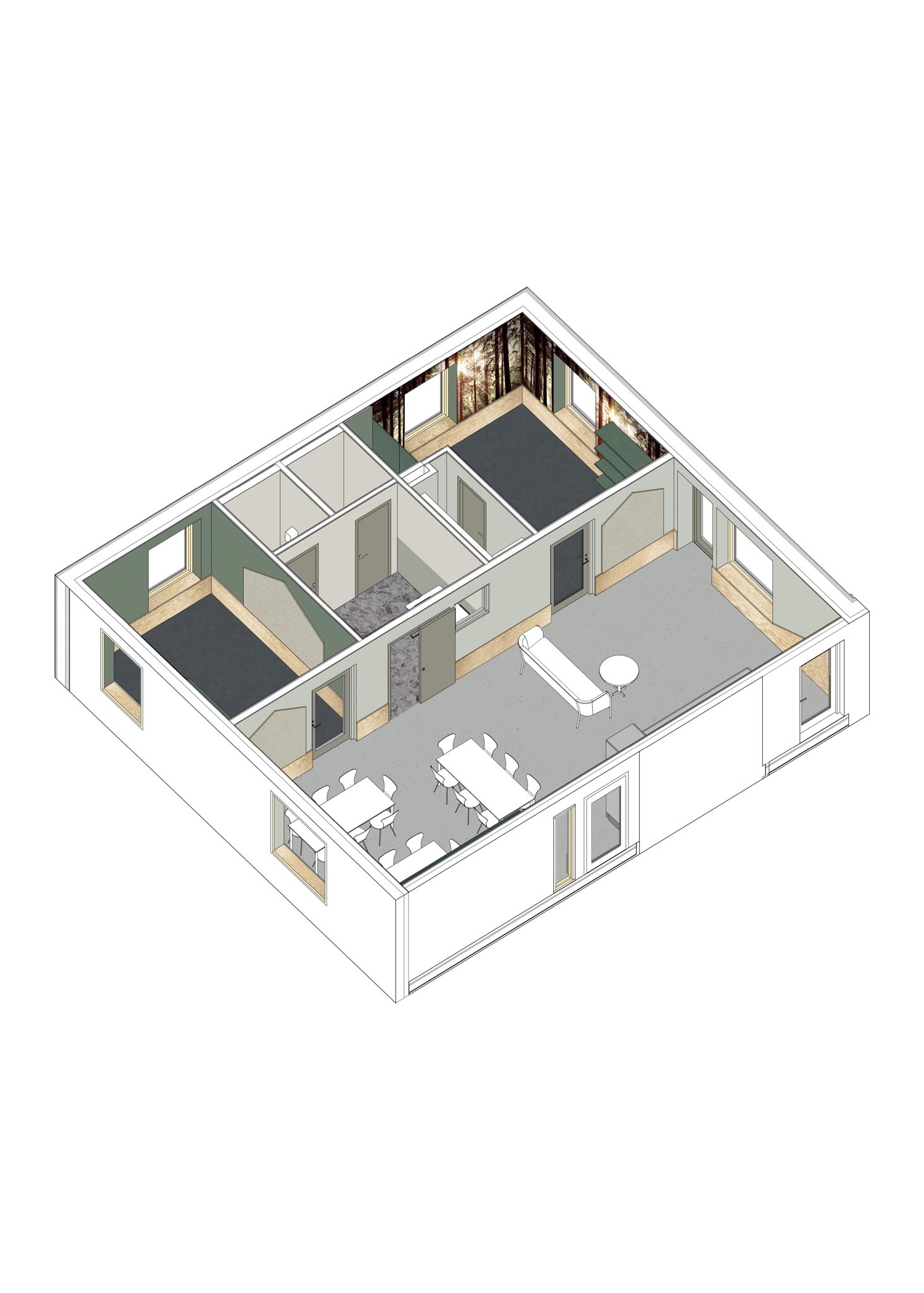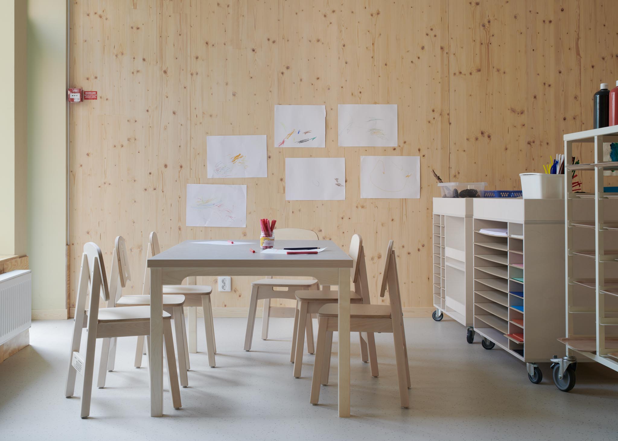 Planlösningen består av fyra avdelningar fördelade på två våningar med tillagningskök på markplan. Konceptet kommer fungera som grund för ytterligare tre förskolor där tomterna och antal avdelningar avgör slutresultatet.